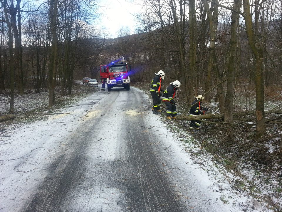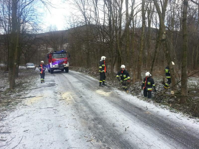 Usuwanie drzewa pochylonego w wyniku silnego wiatru nad drogą gminną - 06.12.2013